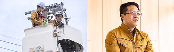 住宅や工場の配線、照明の取替、コンセントやスイッチの増設、エアコンの取り付けなど、工事内容も規模も様々。大規模な公共施設の電気設備工事に関わることもあります。前日に営業と打ち合わせを行い、工事内容などを確認して、必要な器材を車に積み込んでおくという事前の準備が大切。翌朝、段取りと器材を再度確認した上で、現場に向かうようにしています。現場では自分で工事を行うこともあれば、協力会社の人たちに指示を出し、監督業務に専念する時も。完成形は図面に書いてありますが、その完成形を実現するためにどういうやり方で進めていくかは、私たち次第です。短時間で作業が終わり、キレイに仕上がった時にはやりがいを感じます。また、小さい時に遊んだことのある児童公園や、これから利用したいと思う施設に携わった時には大きな達成感を味わえます。
